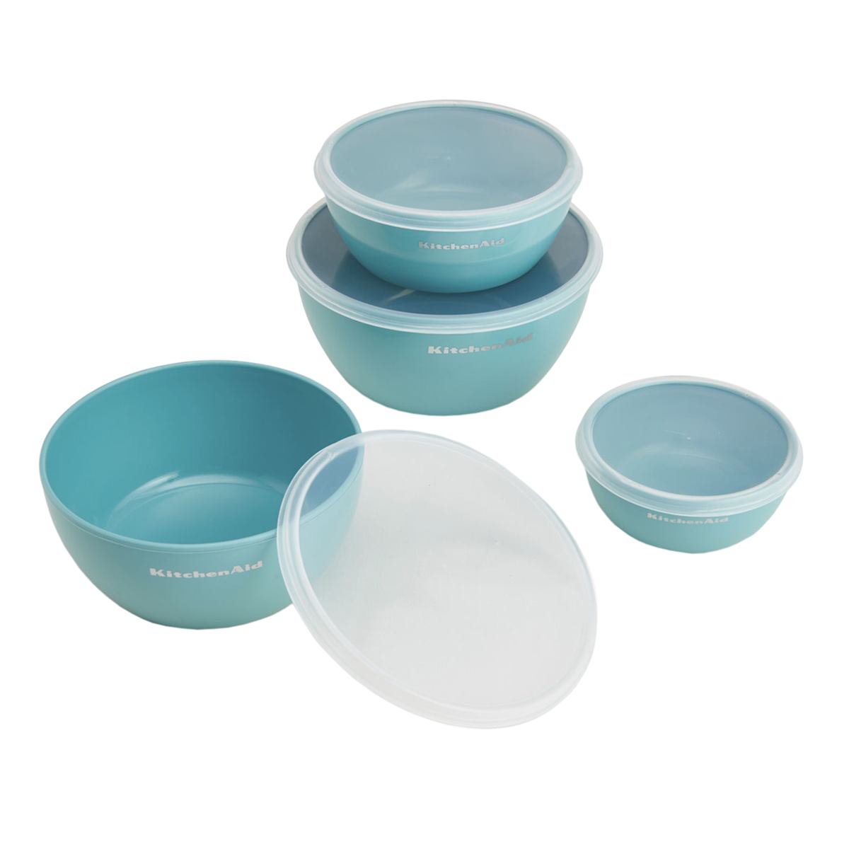 KitchenAid Set of 4 Prep Bowls With Lids, Aqua Sky