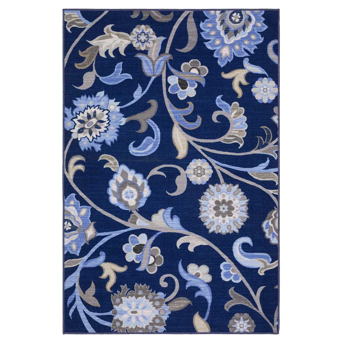 (D624) Seaton Navy Blue Floral Accent Rug, 4x6