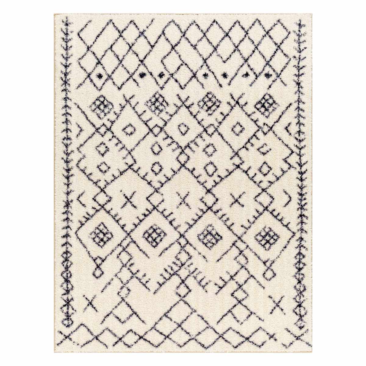(B880) Lykke Black & White High-Pile Washable Area Rug, 5x7