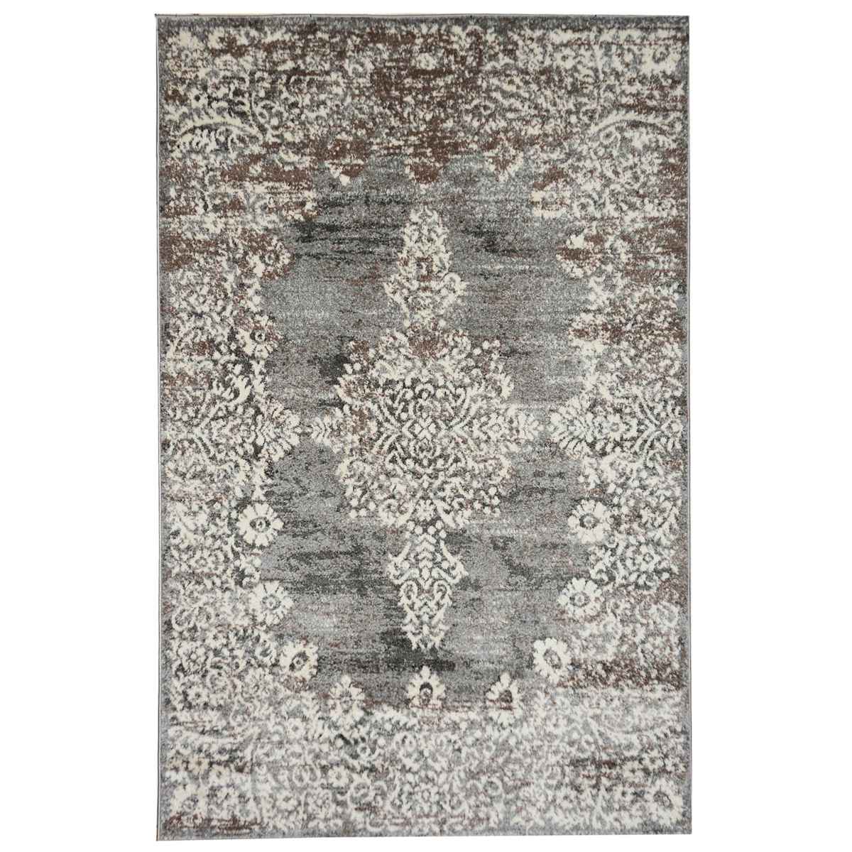 (D393) Grey & White Antique Medallion Area Rug, 8x10