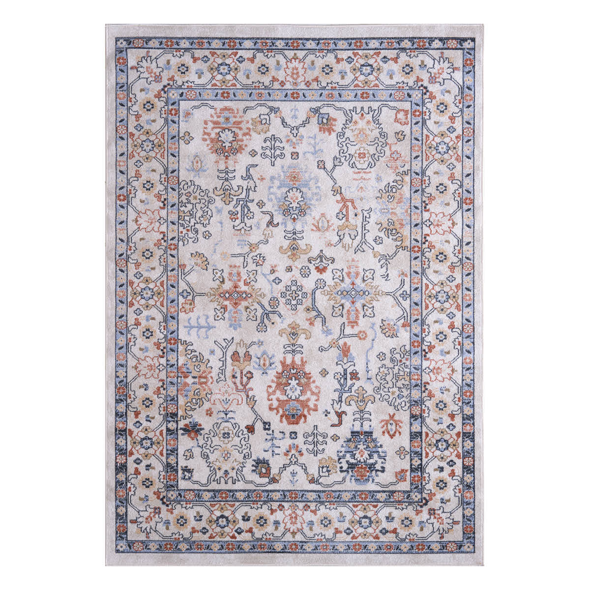 (B876) Dove Ivory & Blue Medallion Washable Area Rug, 8x10