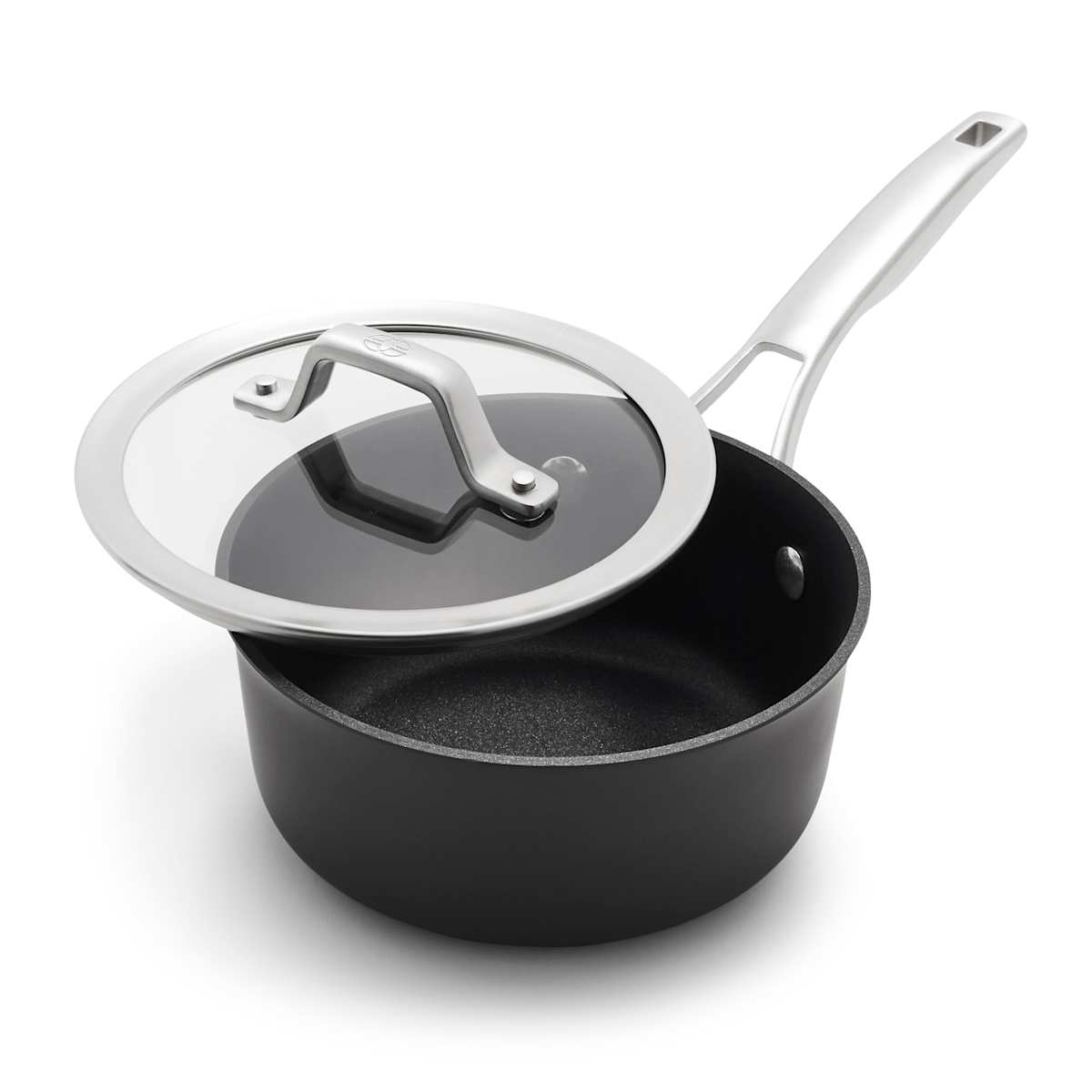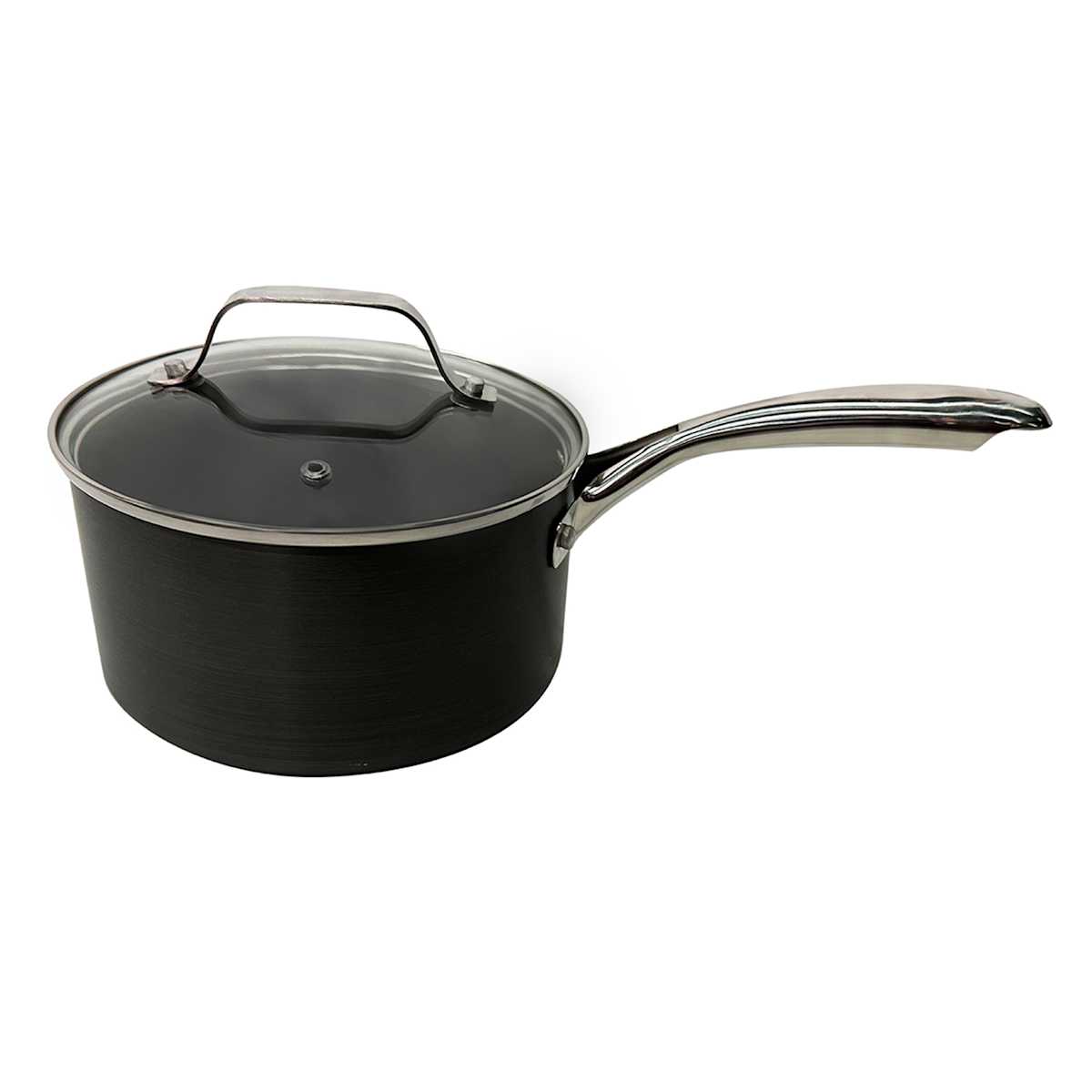 Black Hard-Anodized Sauce Pan with Lid, 2.46qt