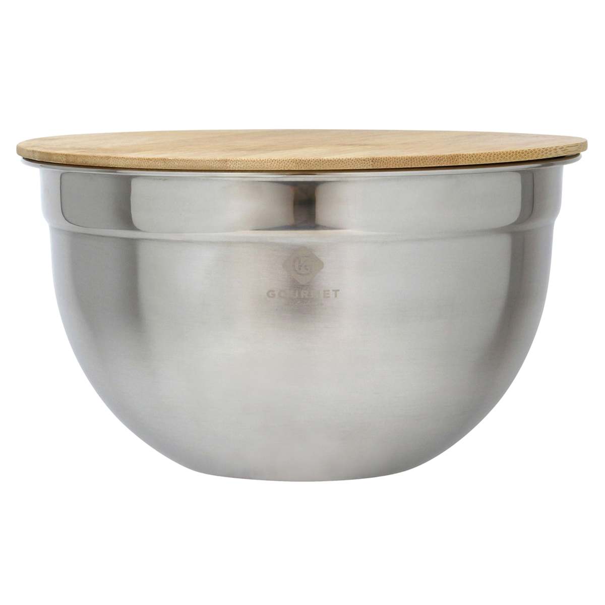 Silver Steel Mixing Bowl with Bamboo Lid, Small