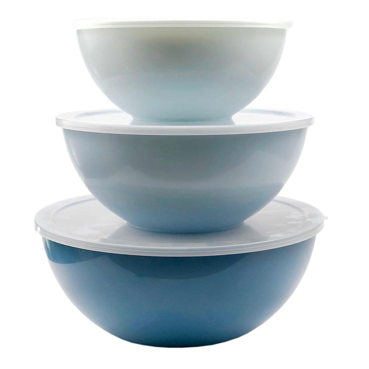 Stainless Steel Mixing Bowl with Blue Non-Skid Base, 3qt