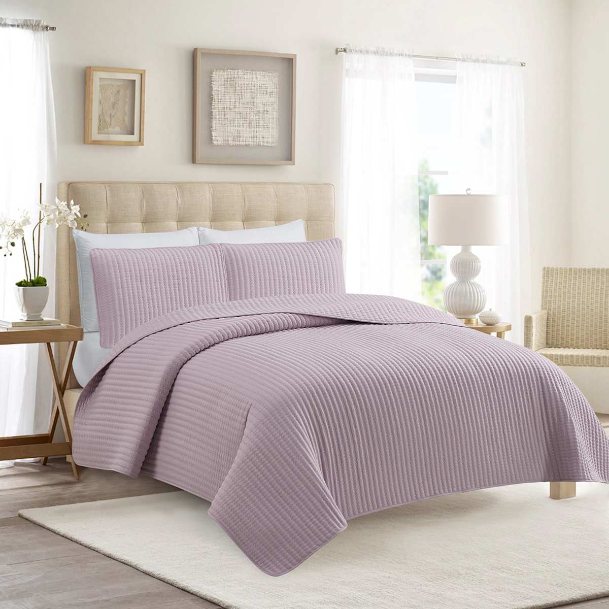 3-Piece Purple Washed Microfiber Quilt Set, King