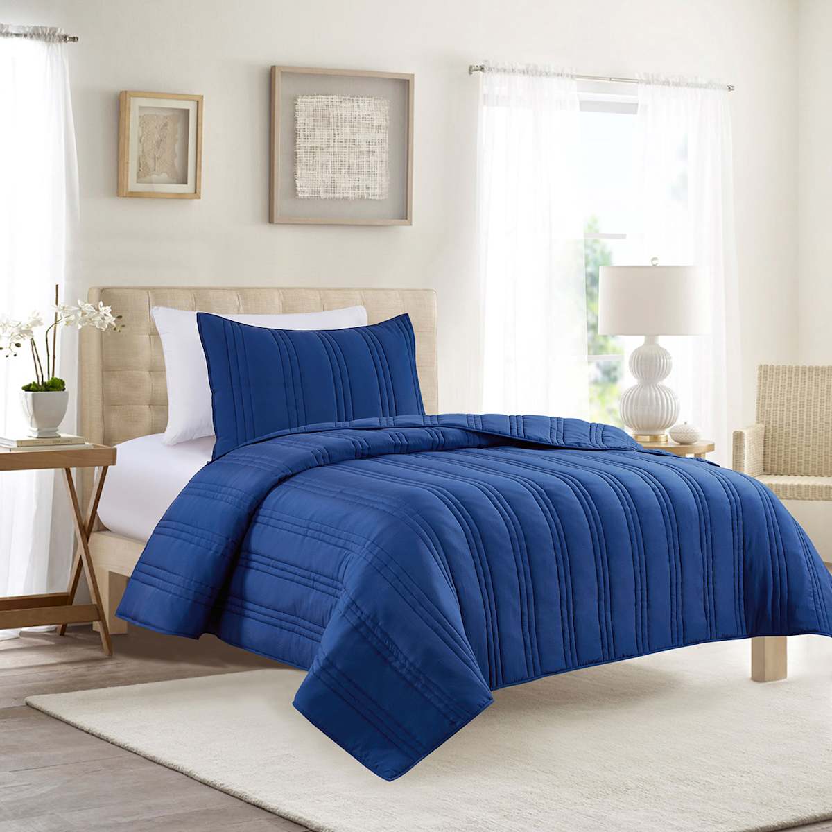 2-Piece Blue Stripe Washed Microfiber Quilt Set, Twin/Twin XL