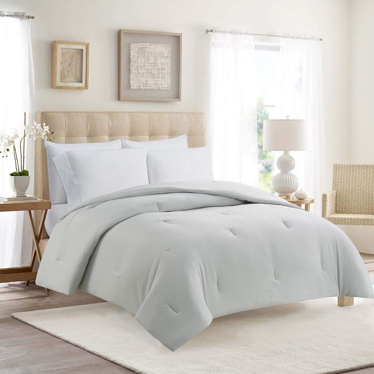 Crosby St. 2-Piece Grey Washed Cotton Waffle Comforter Set, Twin/Twin XL