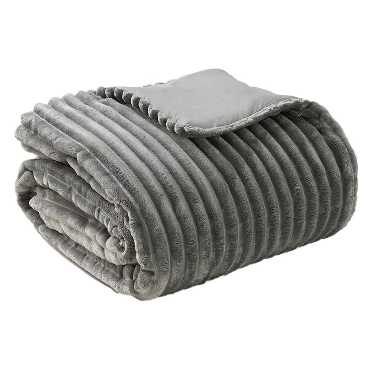3-Piece Grey Ribbed Plush Comforter Set, Full/Queen