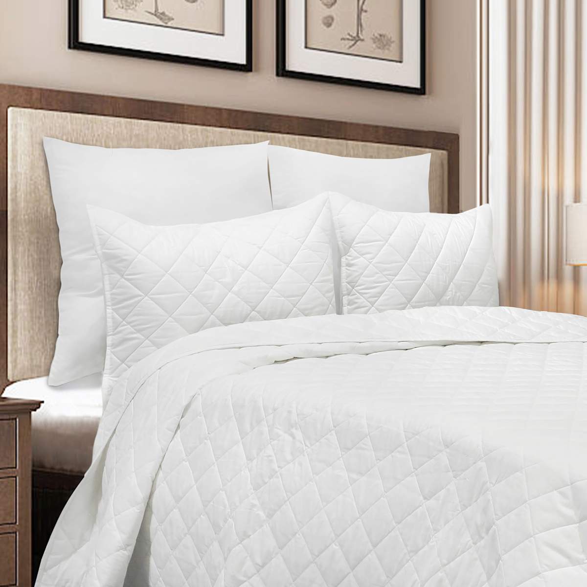 3-Piece White Cotton Percale Quilt Set, Full/Queen