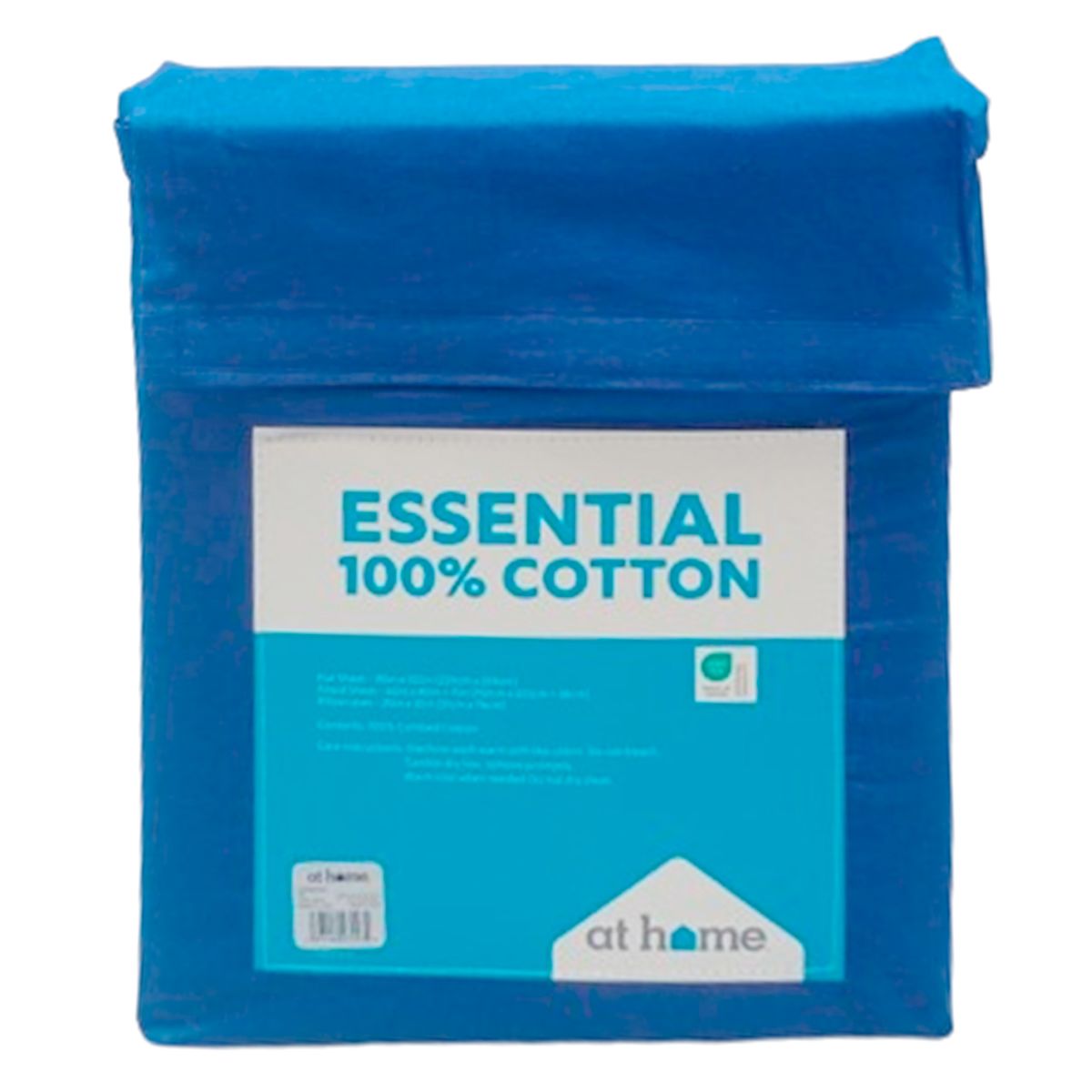 4-Piece Light Blue 200 Thread Count Brushed Cotton Sheet Set, Queen