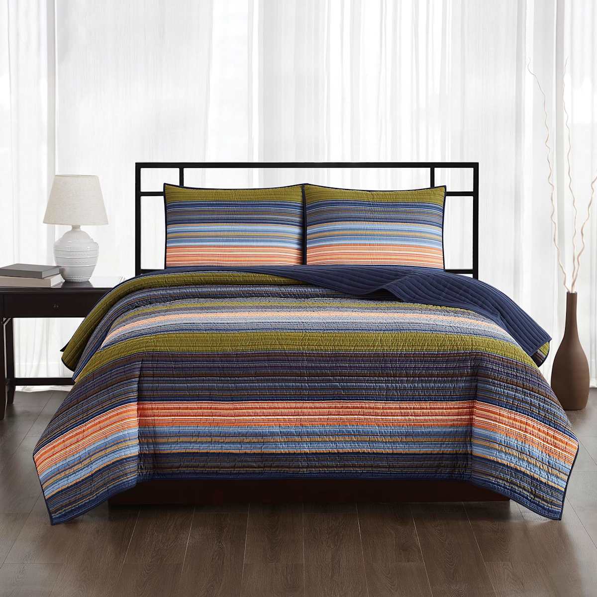 3-Piece Multicolor Striped Quilt Set, Full/Queen