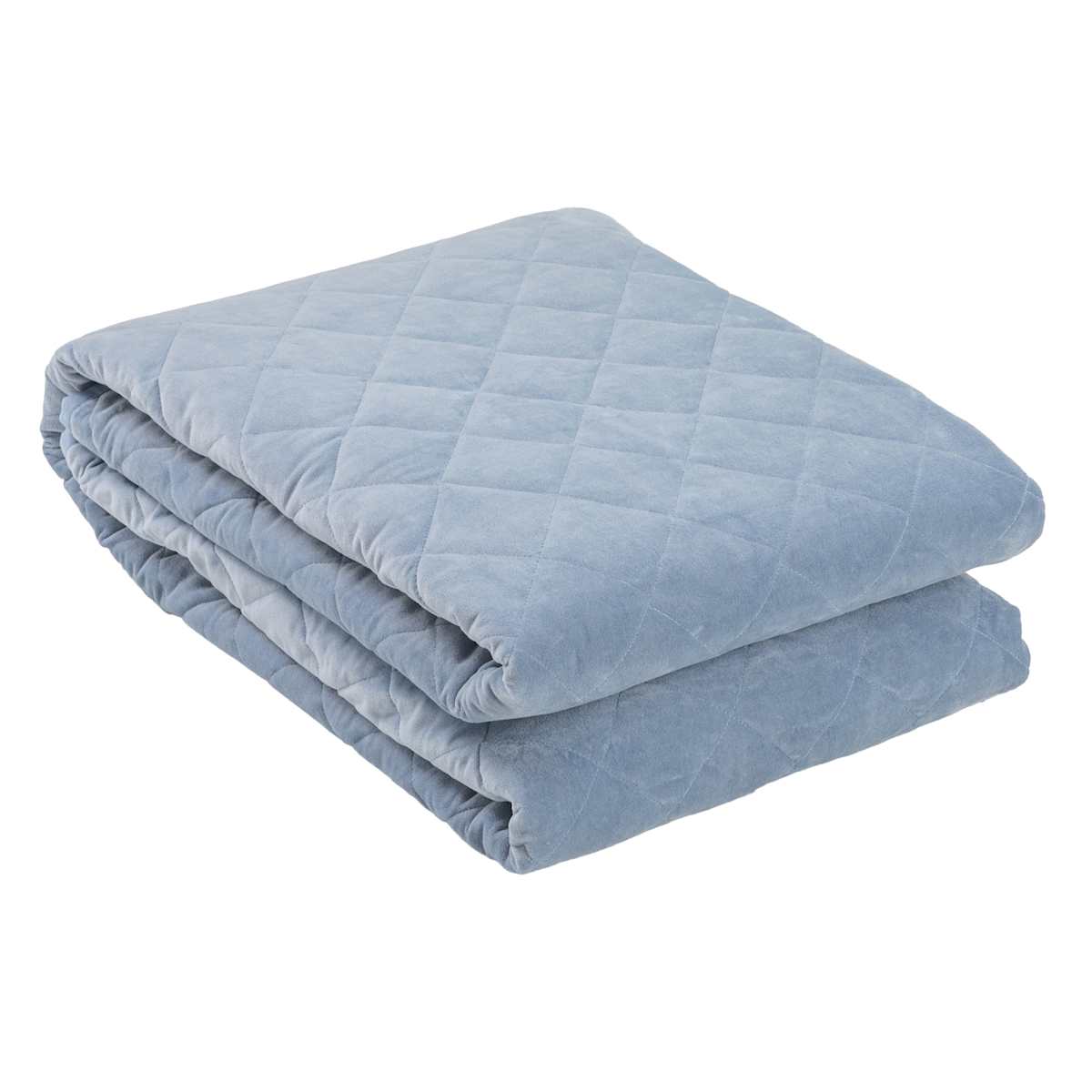 3-Piece Light Blue Cotton Velvet Quilt Set, Full/Queen