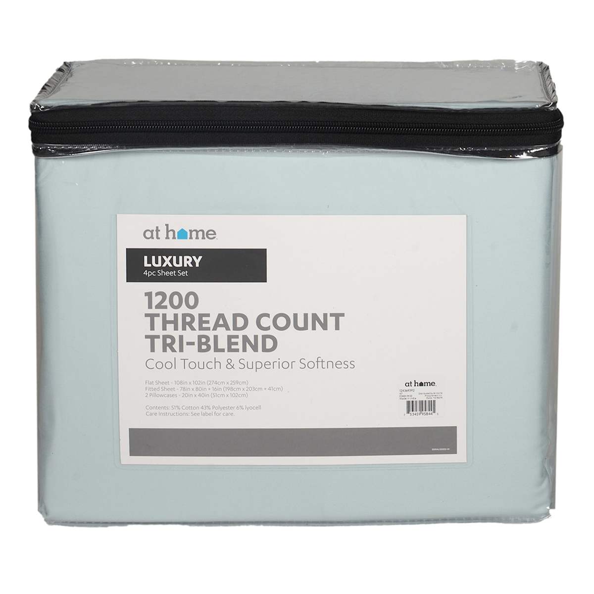 4-Piece Blue 1200 Thread Count Tri-Blend Luxury Sheet Set, King