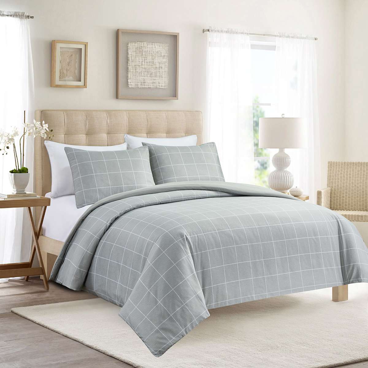 4-Piece Grey Windowpane Printed Duvet Set with Insert, Full/Queen