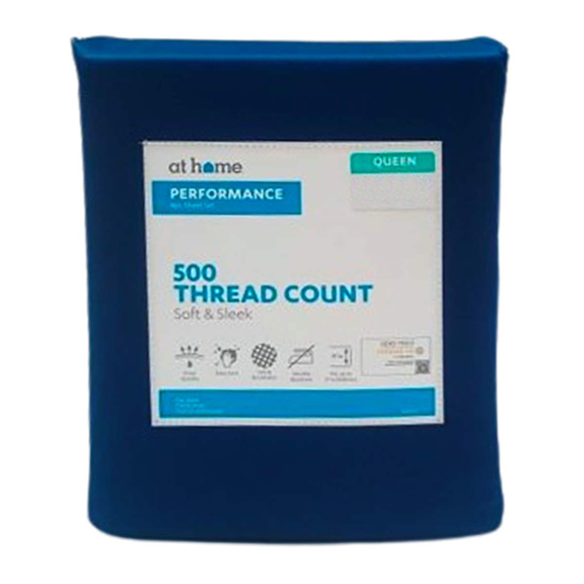 4-Piece Navy Blue 500 Thread Count Cotton Blend Sheet Set, Queen
