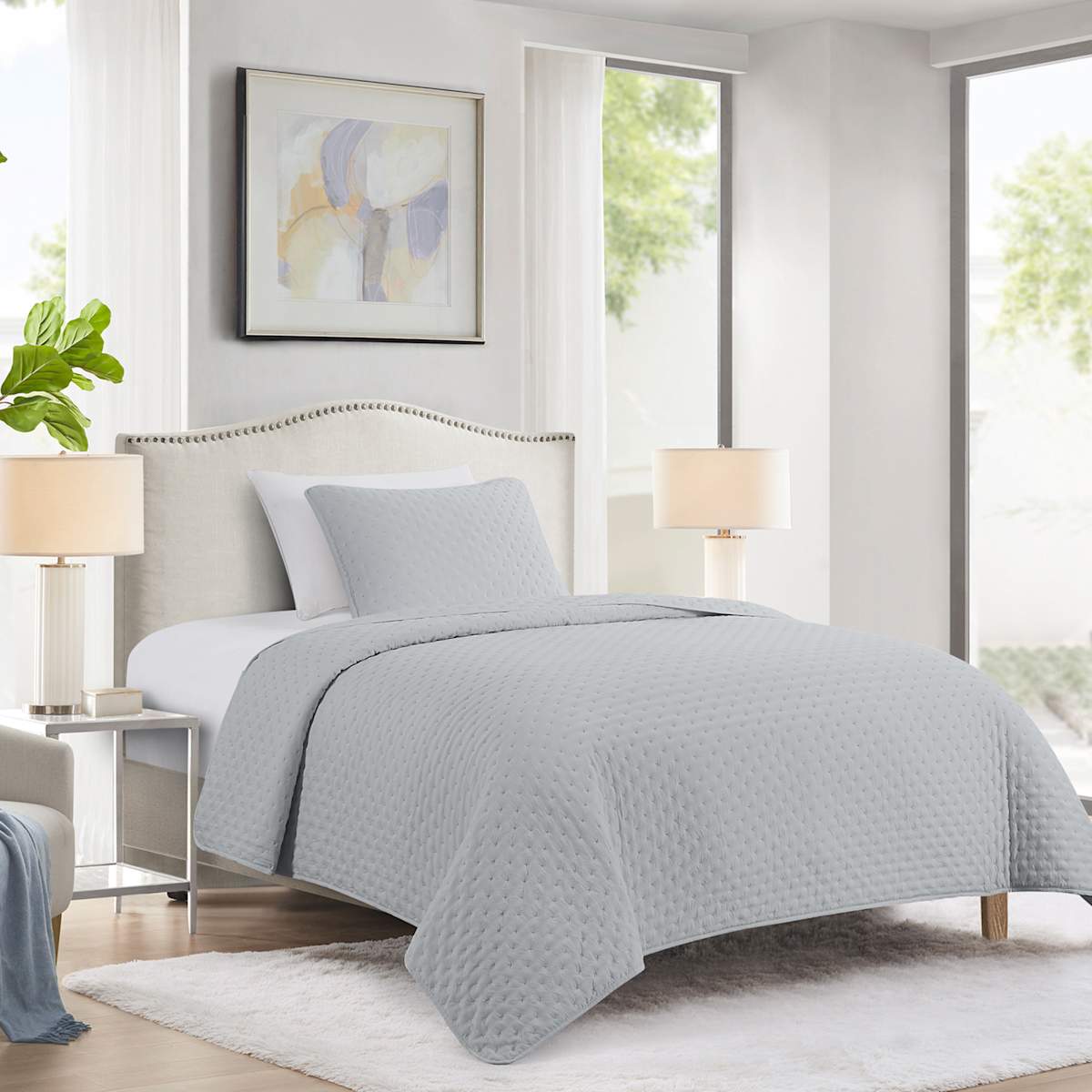 Tiny Dreamers 2-Piece Grey Washed Pinsonic Quilt Set, Twin/Twin XL