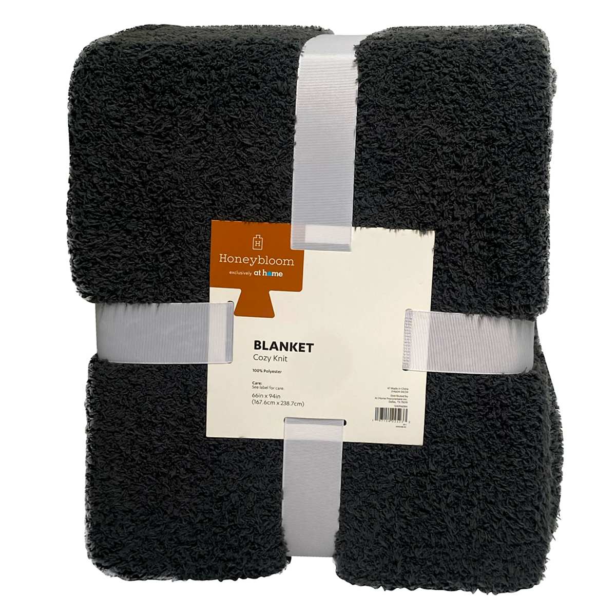 Dark Grey Cozy Knit Bed Blanket, Twin/Twin XL