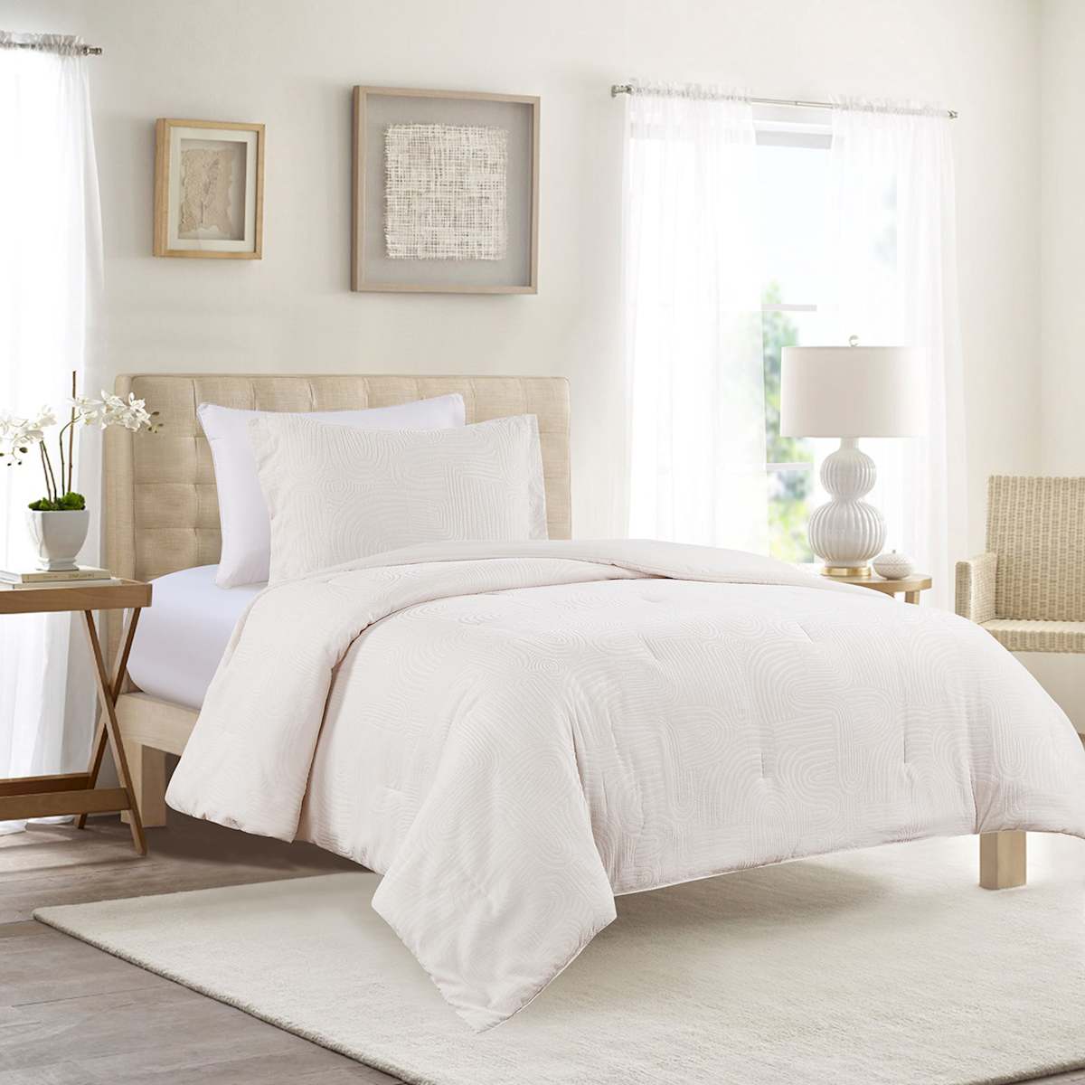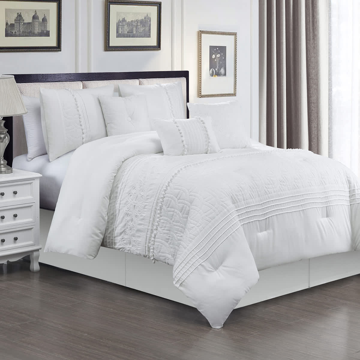 7-Piece White Floral Jacquard Comforter Set, Queen