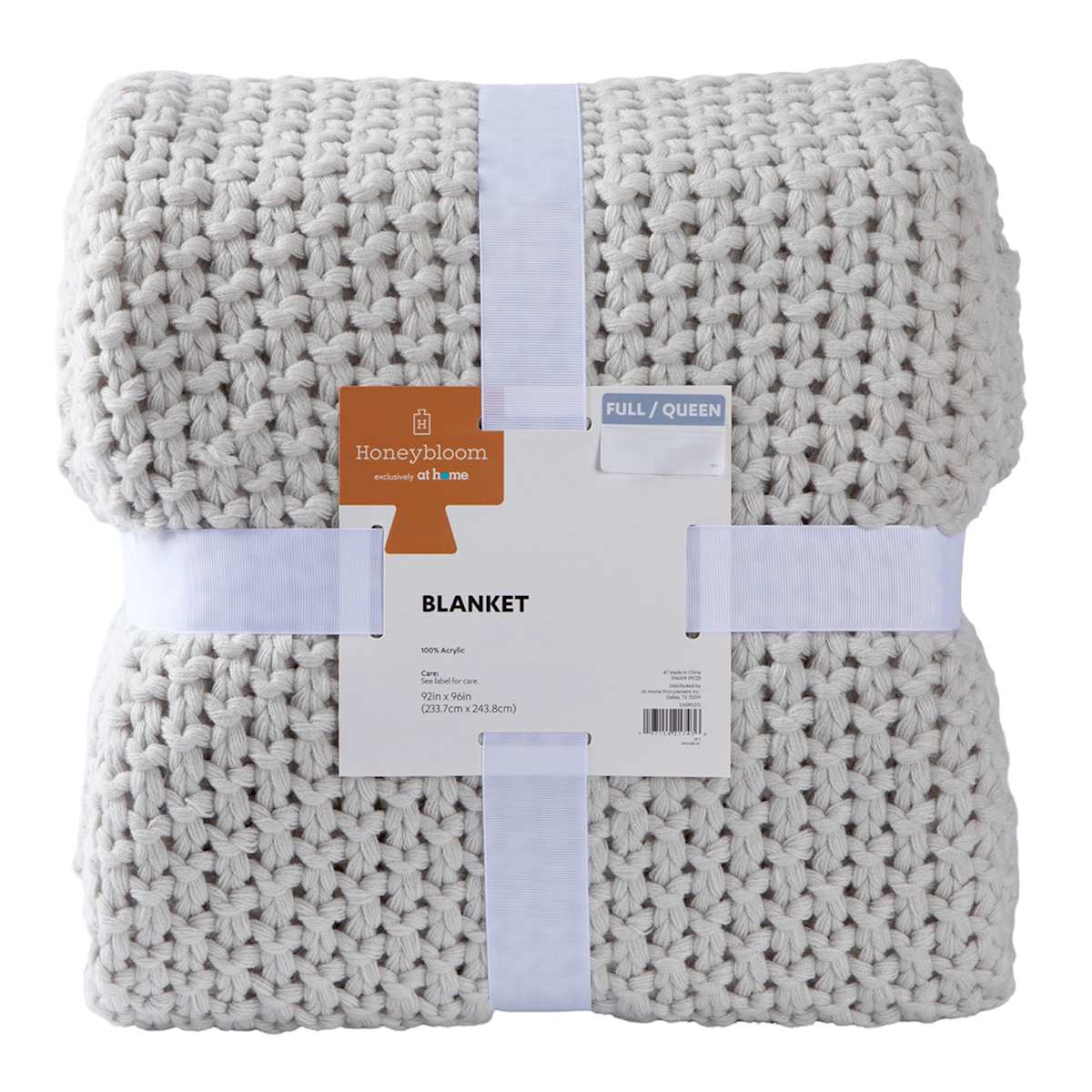 Light Grey Sweater Knit Bed Blanket, Full/Queen
