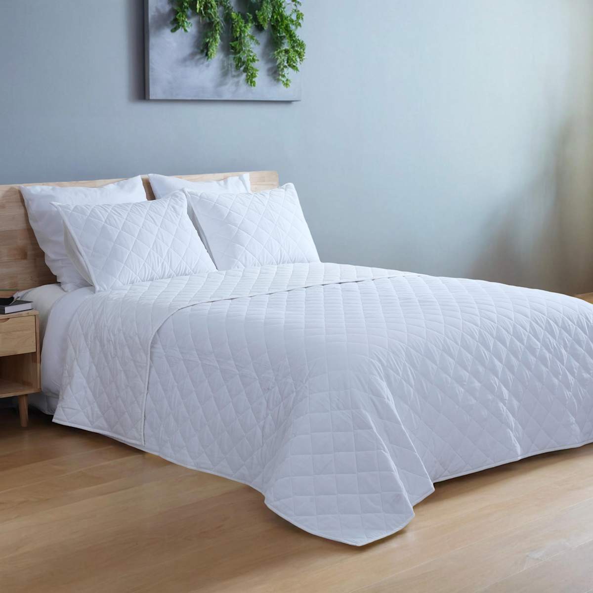 3-Piece White Cotton Velvet Quilt Set, Full/Queen