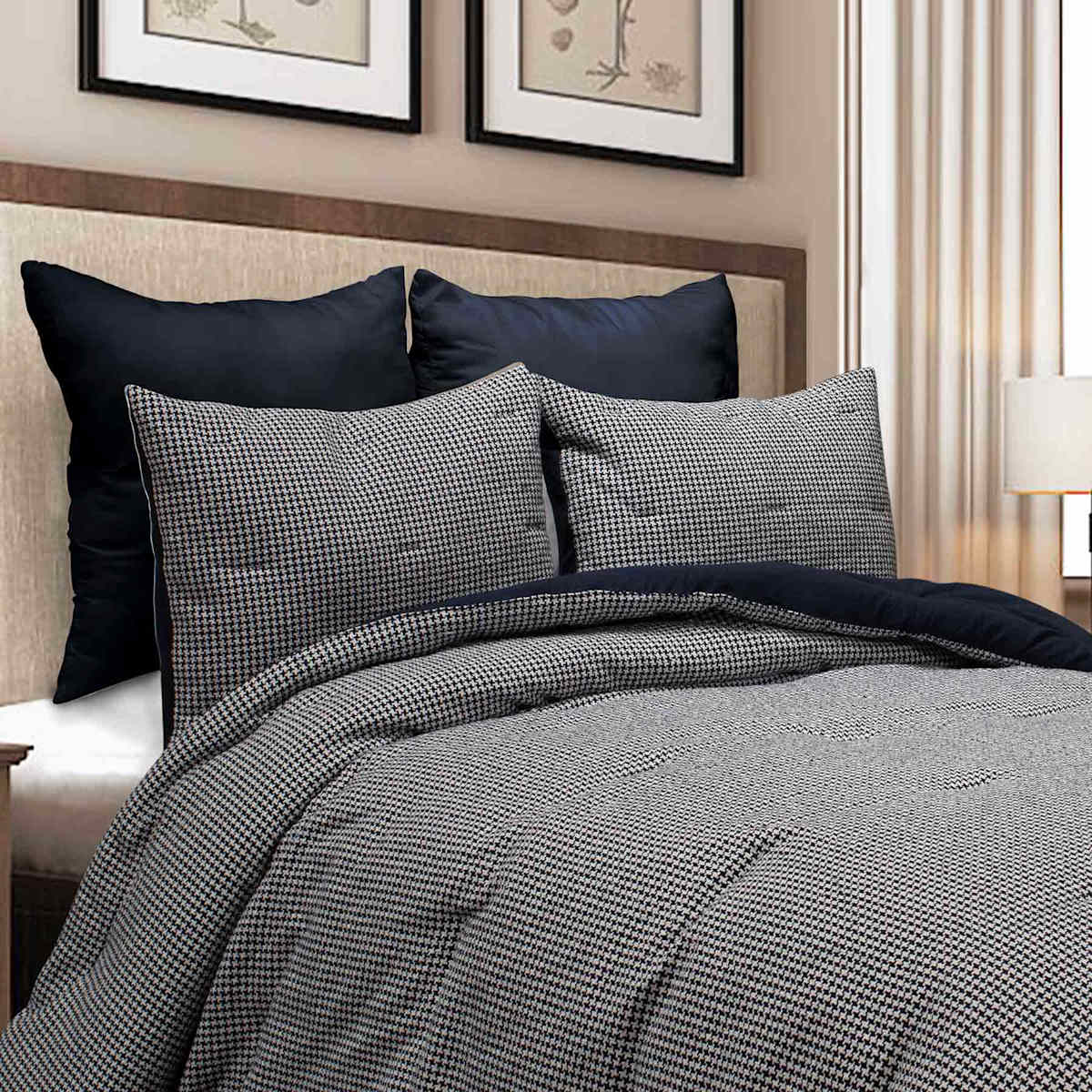 Crosby St. 3-Piece Navy Houndstooth Cotton Comforter Set, King