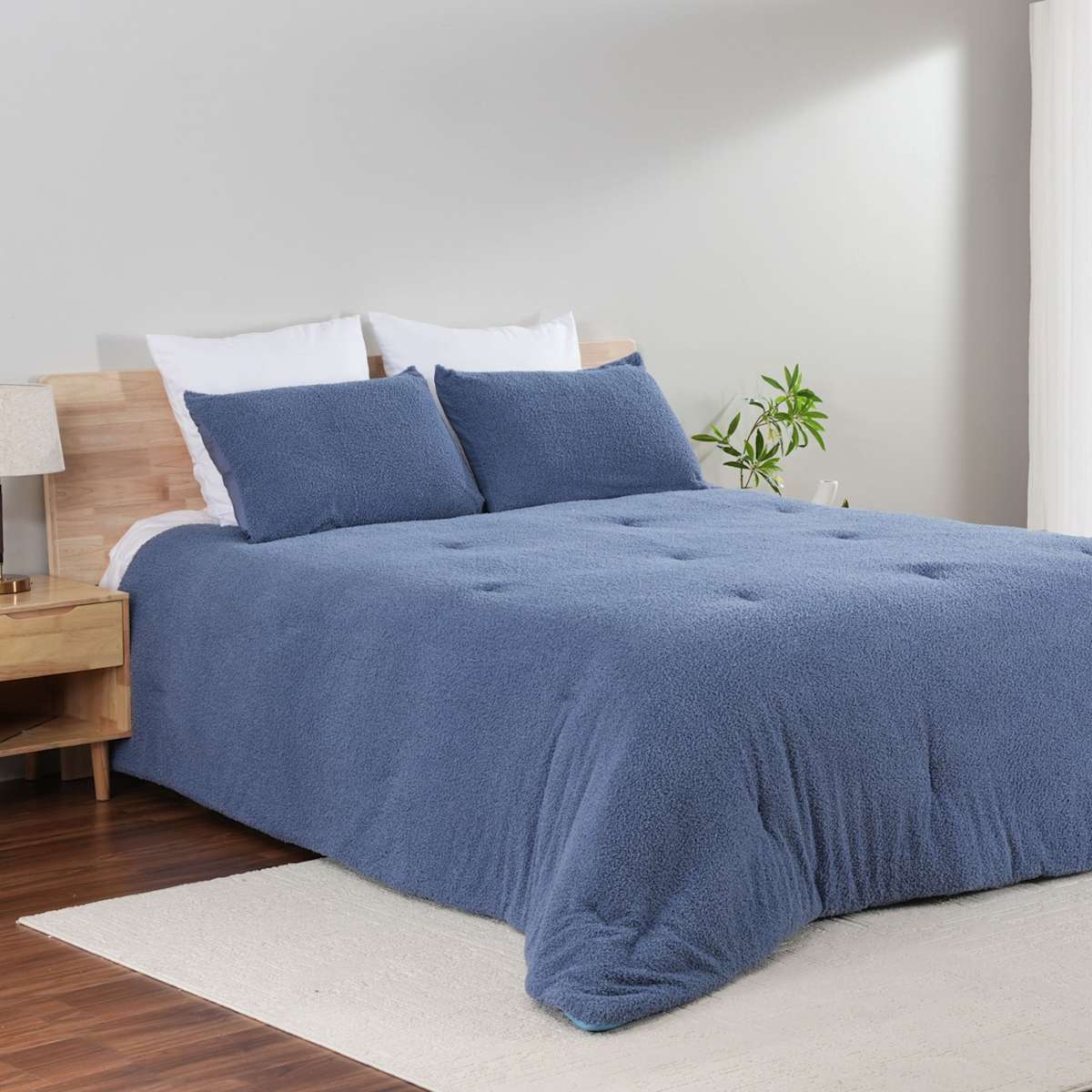 3-Piece Blue Cozy Knit Comforter Set, Full/Queen