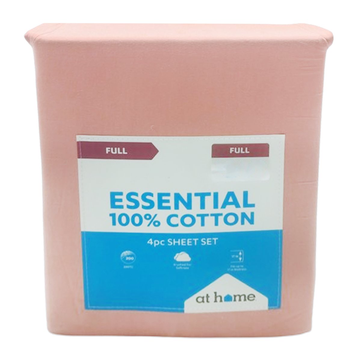 4-Piece Coral 200 Thread Count Brushed Cotton Sheet Set, Full