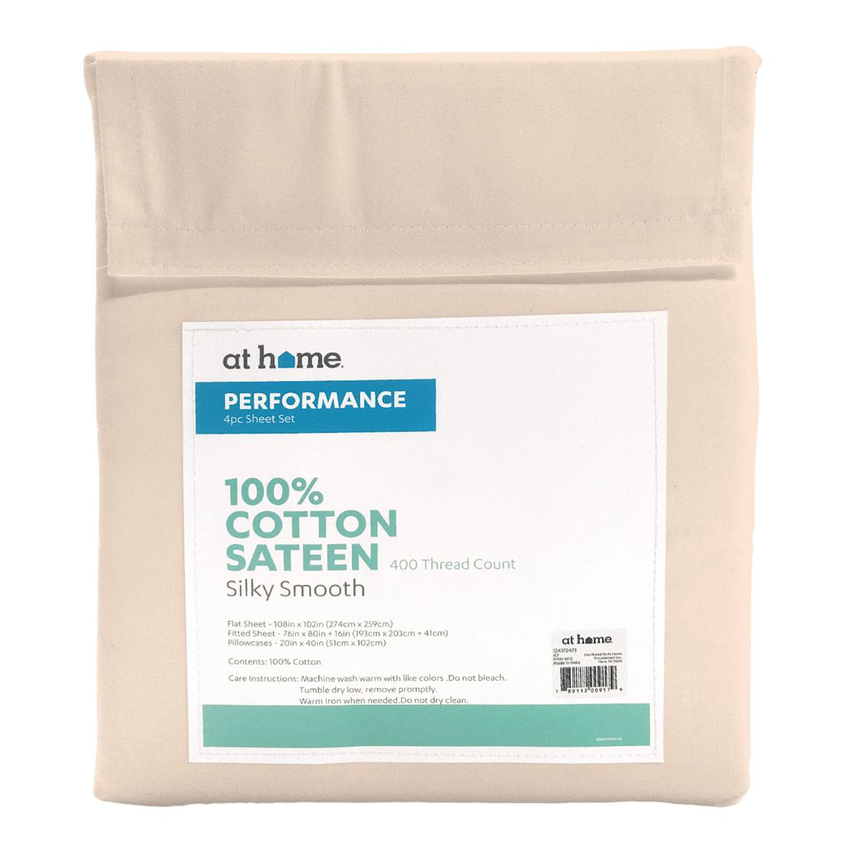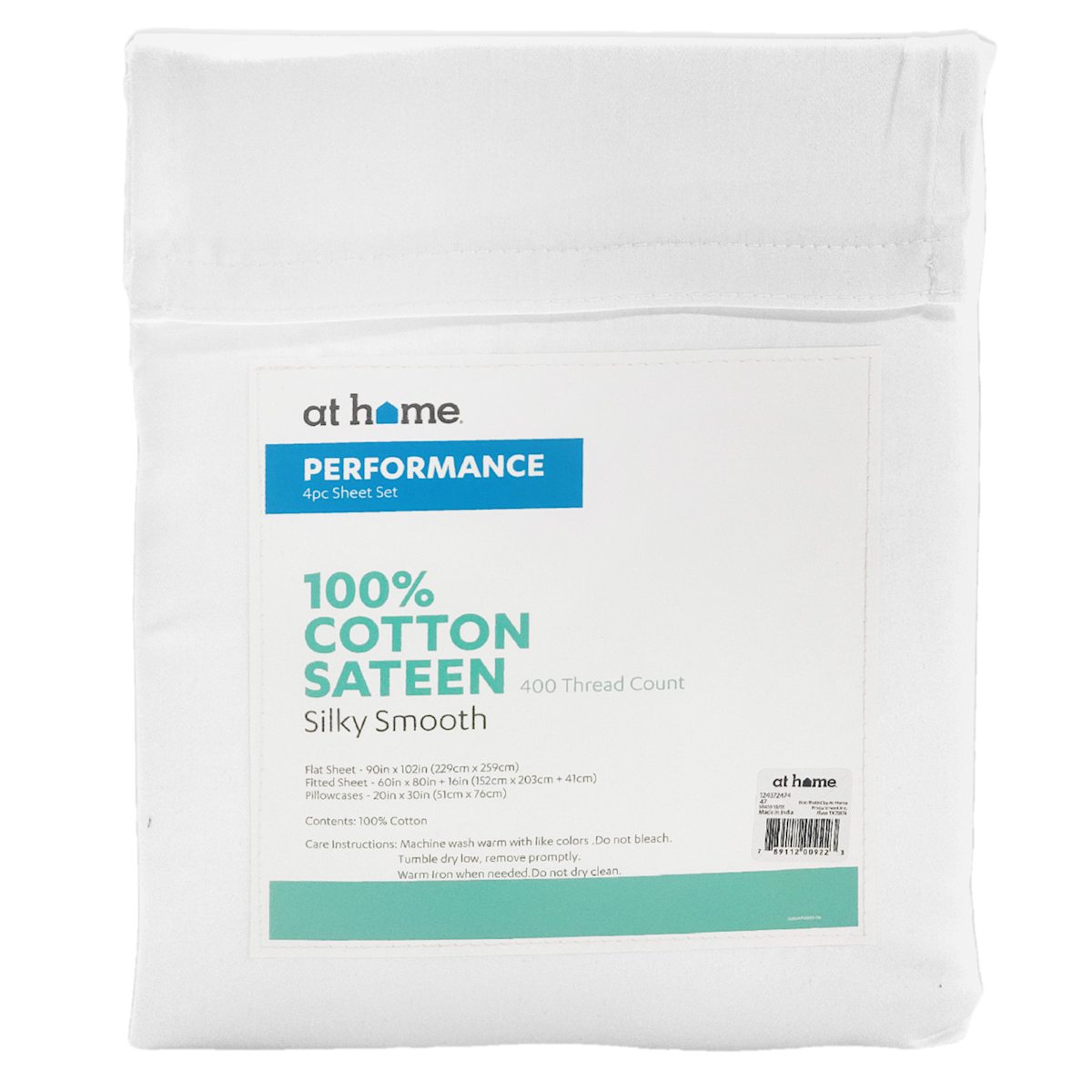 4-Piece White 400 Thread Count Cotton Performance Sheet Set, Queen
