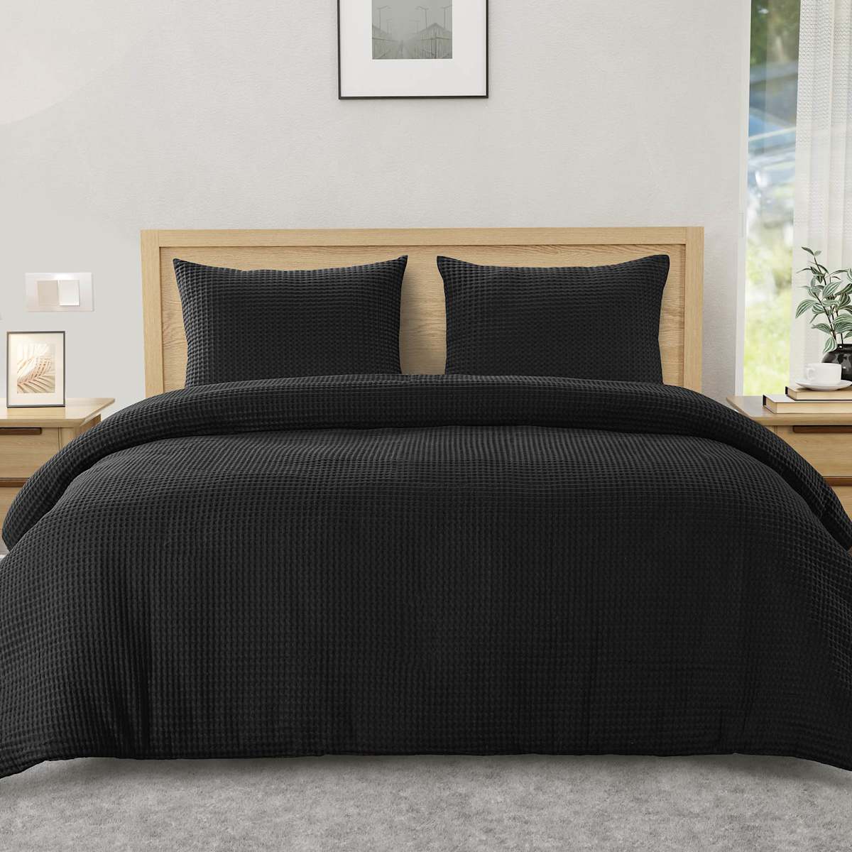 Crosby St. 3-Piece Black Waffle Cotton Duvet Set, Full/Queen