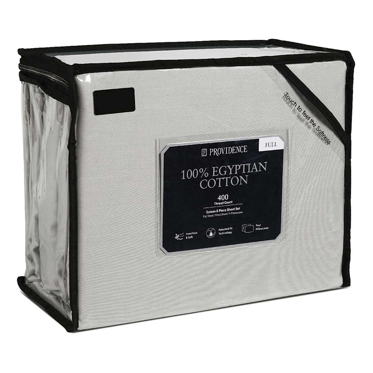 Providence 6-Piece Light Grey 100% Egyptian Cotton Sateen Sheet Set, Full