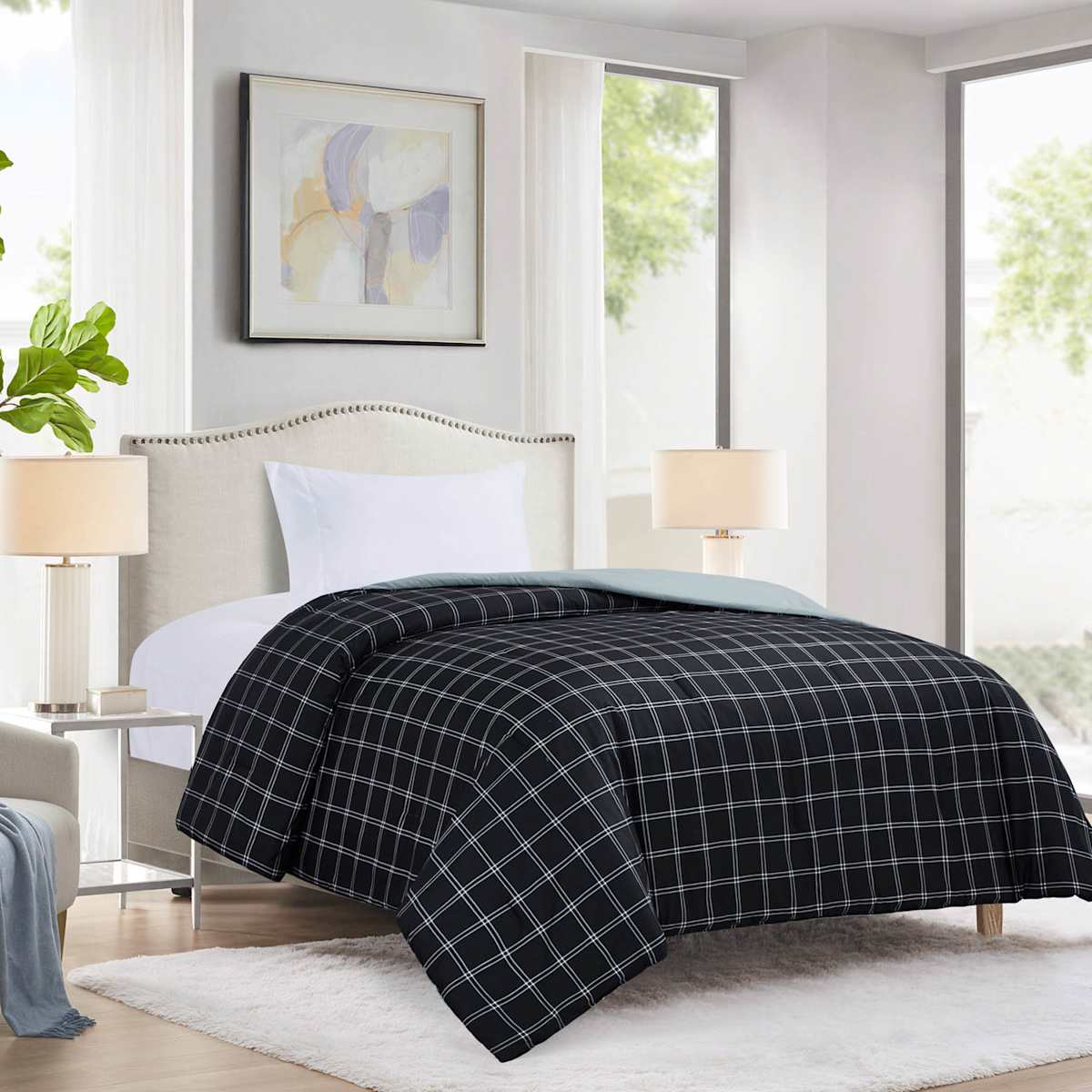 Black Windowpane Printed Microfiber Comforter, Twin/Twin XL