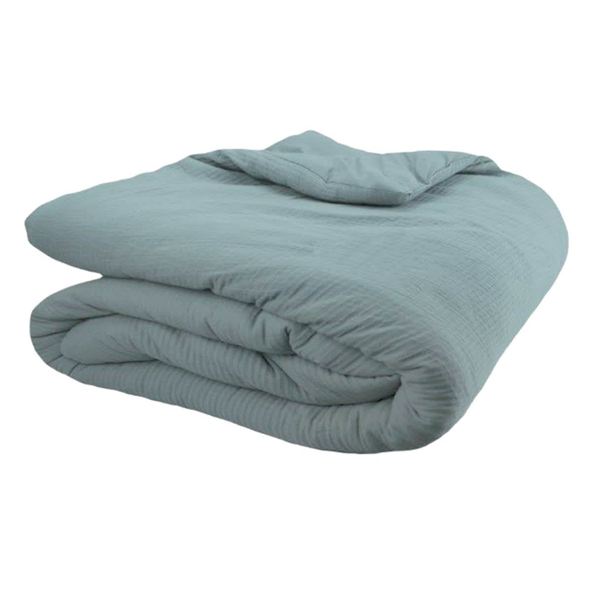 3-Piece Blue Plaid Flannel Printed Cotton Comforter Set, Full/Queen