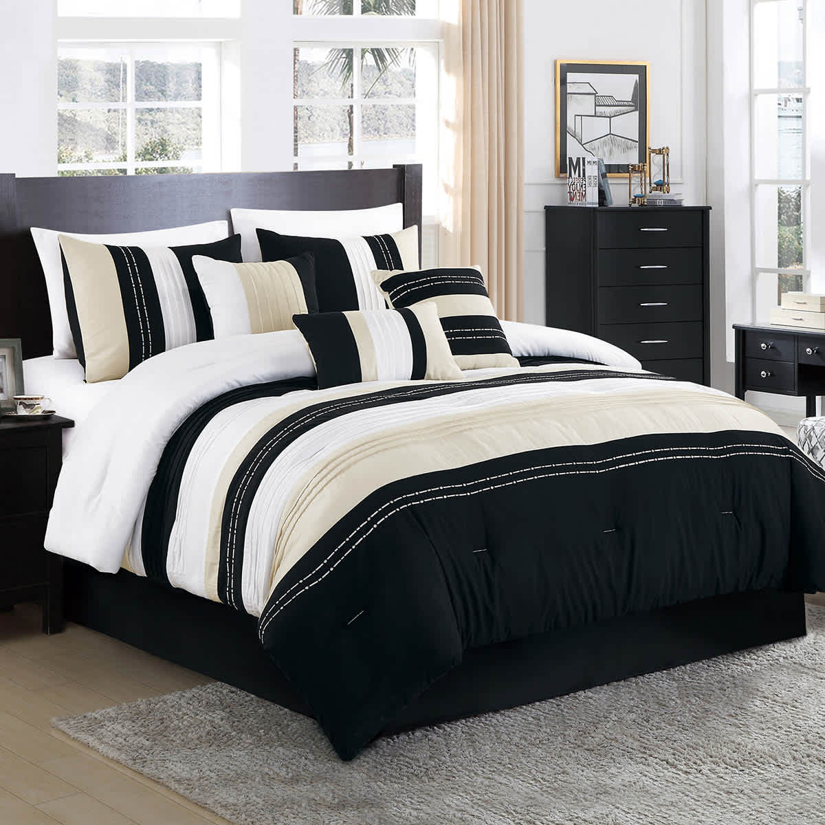 7-Piece Jasper Multicolor Striped Comforter Set, Queen