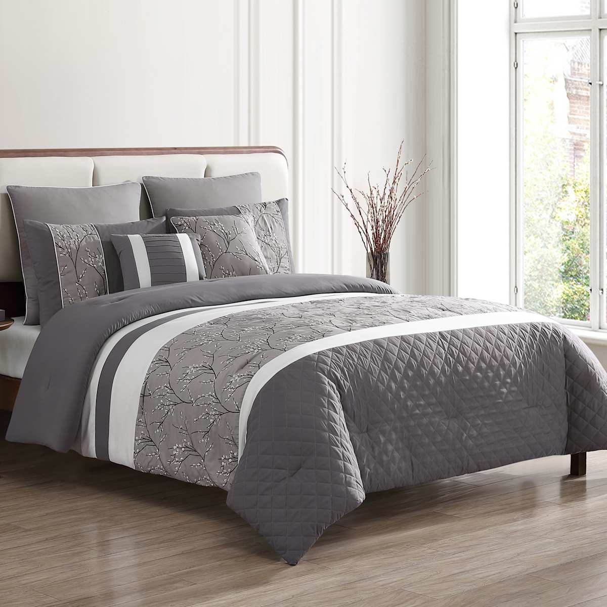 7-Piece Wayton Grey Comforter Set, Full/Queen