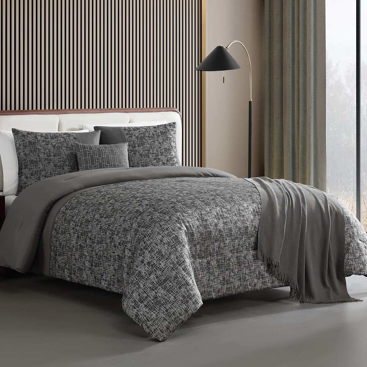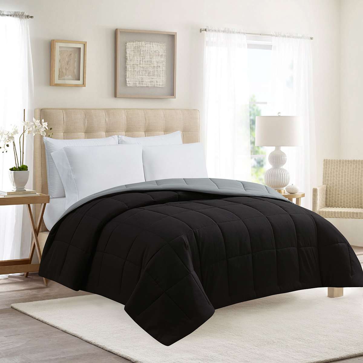 Black & Grey Reversible Brushed Microfiber Comforter, King
