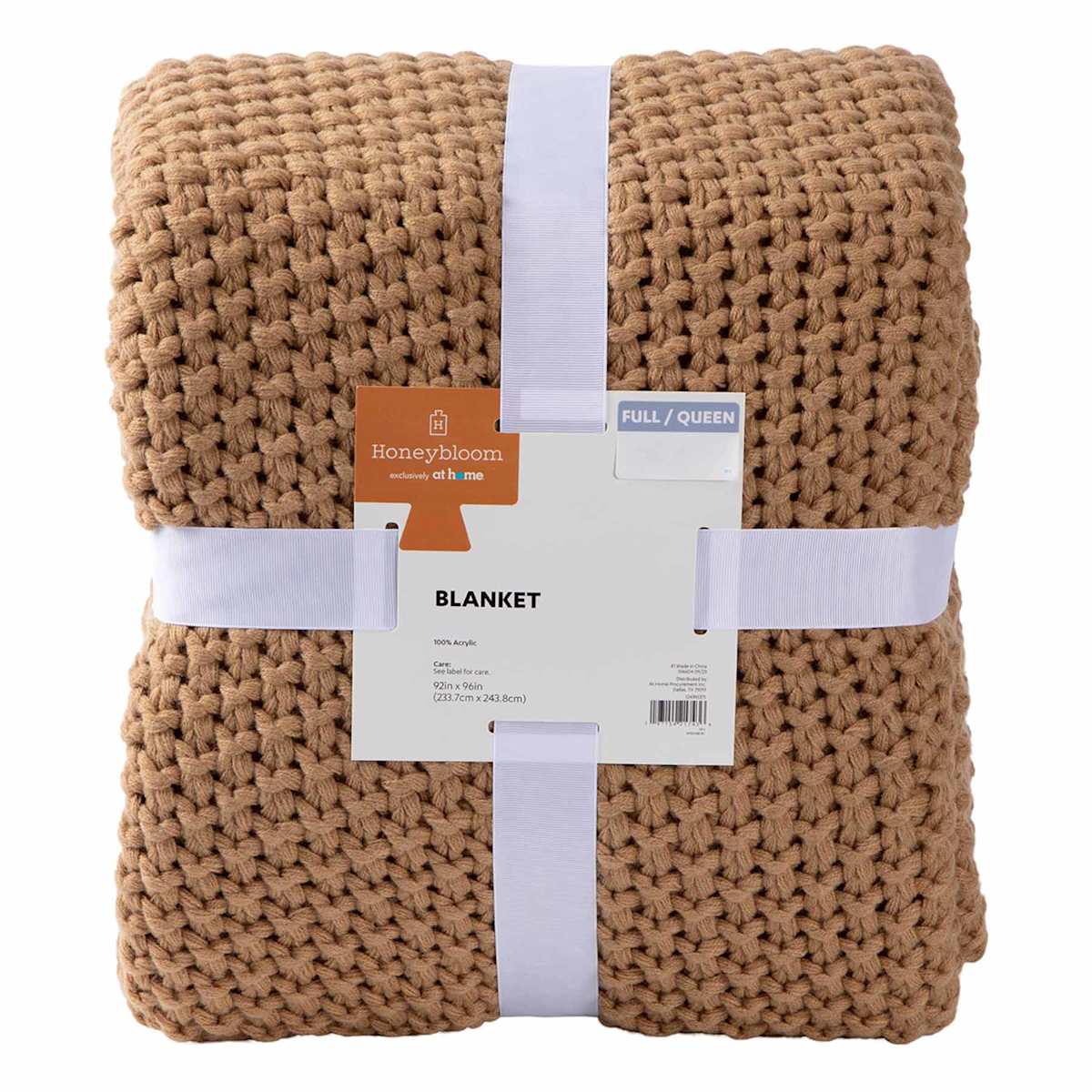 Brown Sweater Knit Bed Blanket, Full/Queen