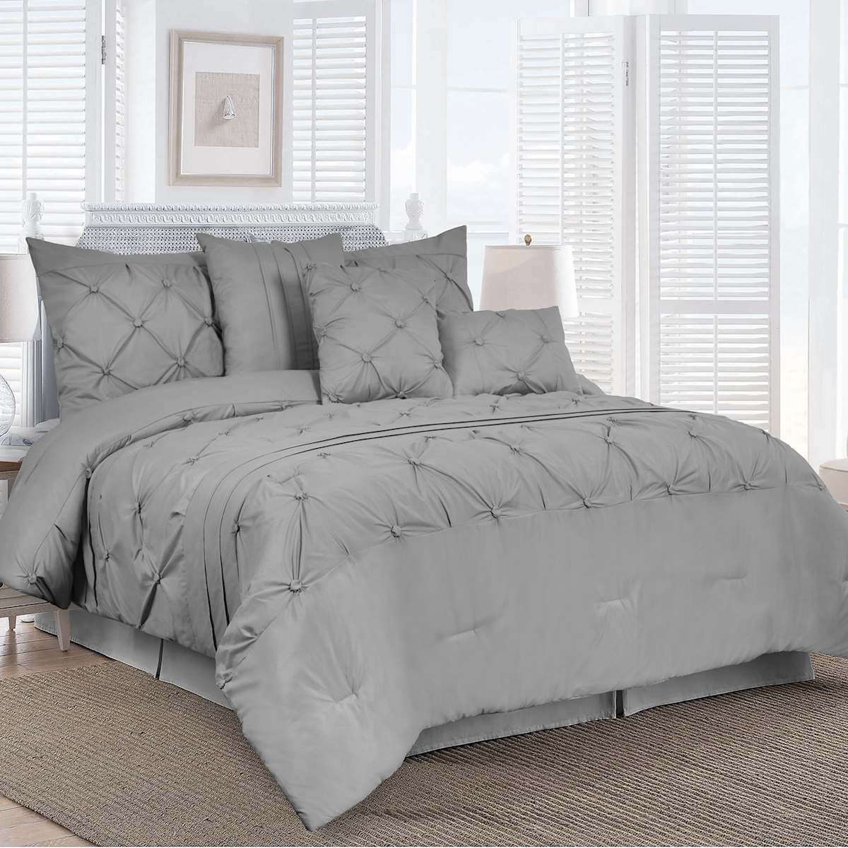 7-Piece Grey Embroidered Pleated Comforter Set, Queen