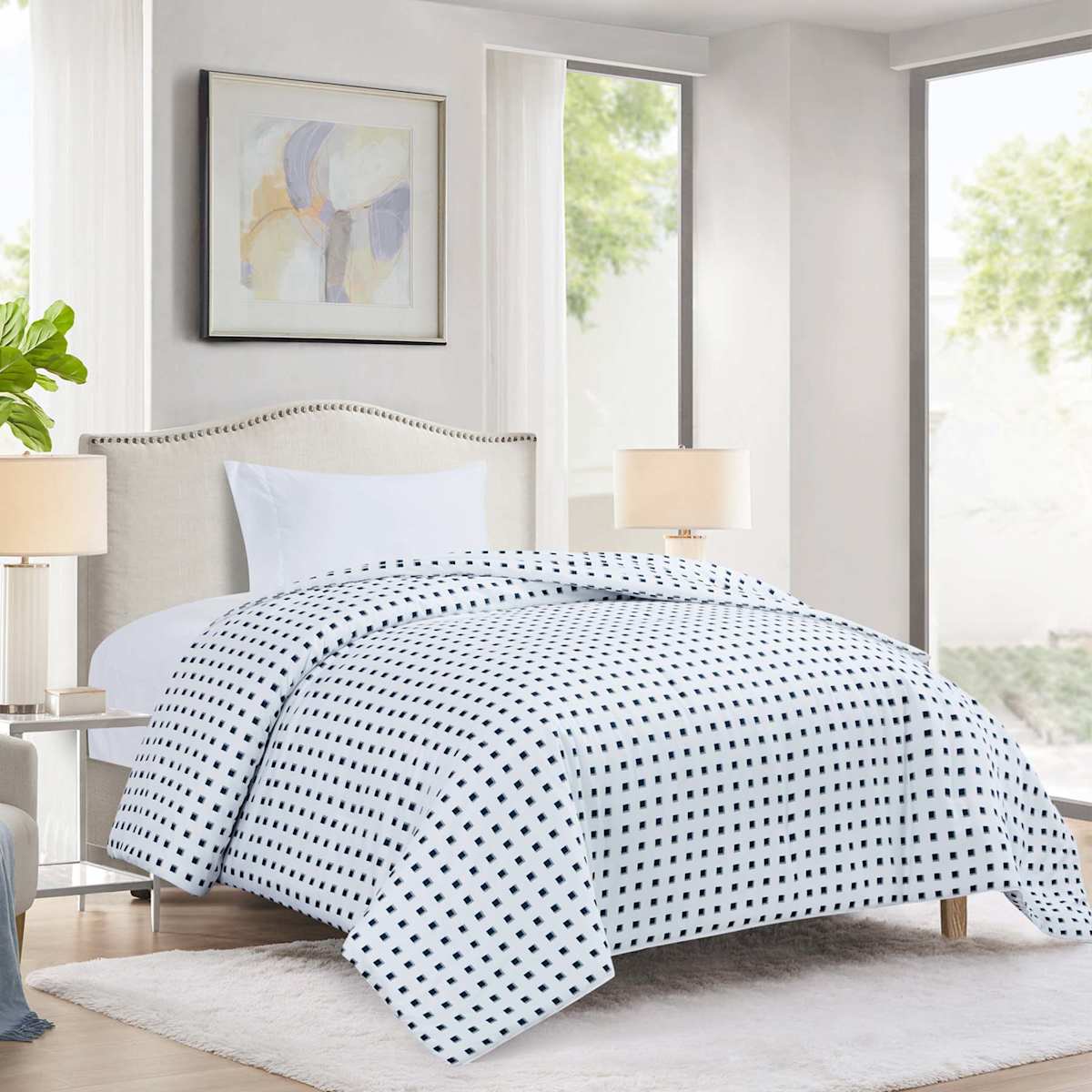 Navy Grid Printed Microfiber Comforter, Twin/Twin XL