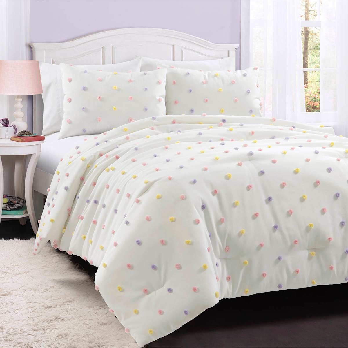 Tiny Dreamers 2-Piece White Tufted Dot Comforter Set, Twin