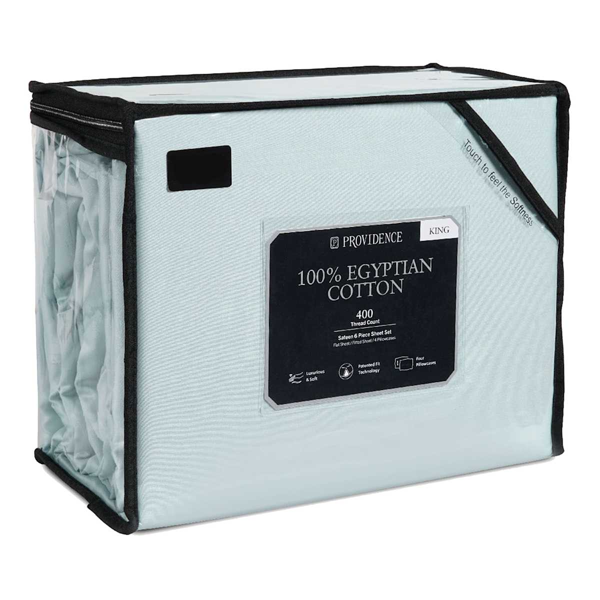 Providence 6-Piece Light Blue 100% Egyptian Cotton Sateen Sheet Set, King