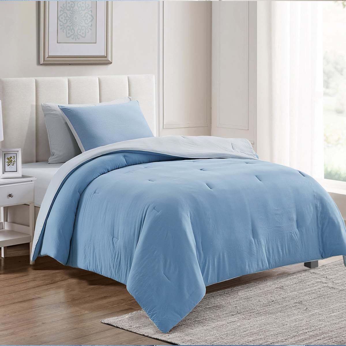 Blue & Grey Reversible Microfiber Comforter & Sheet Set, Twin/Twin XL