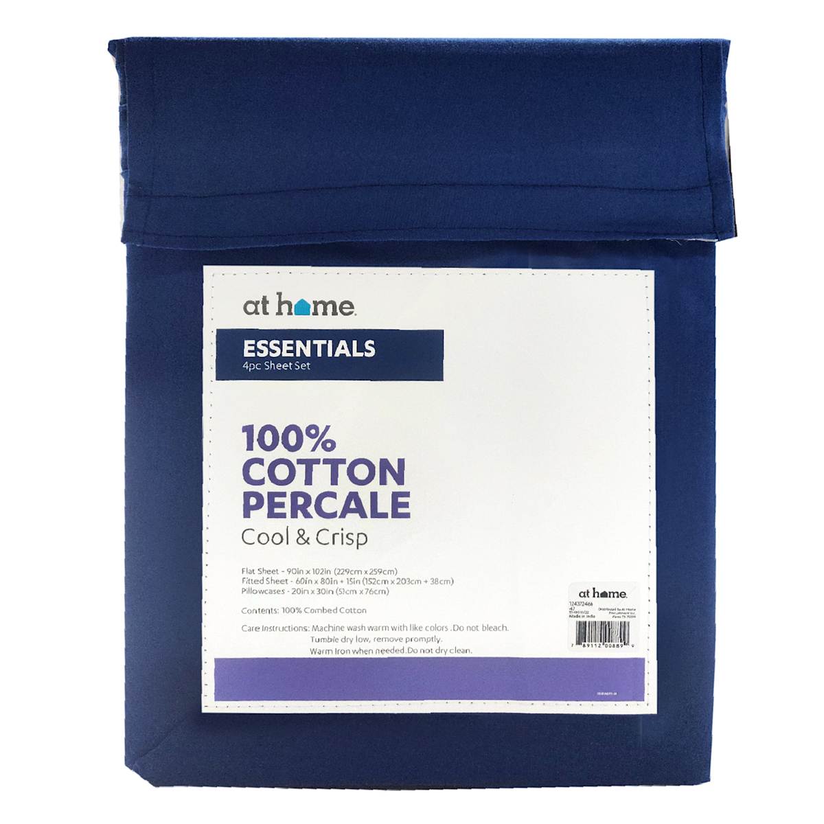 4-Piece Navy Blue 200 Thread Count Cotton Essentials Sheet Set, Queen