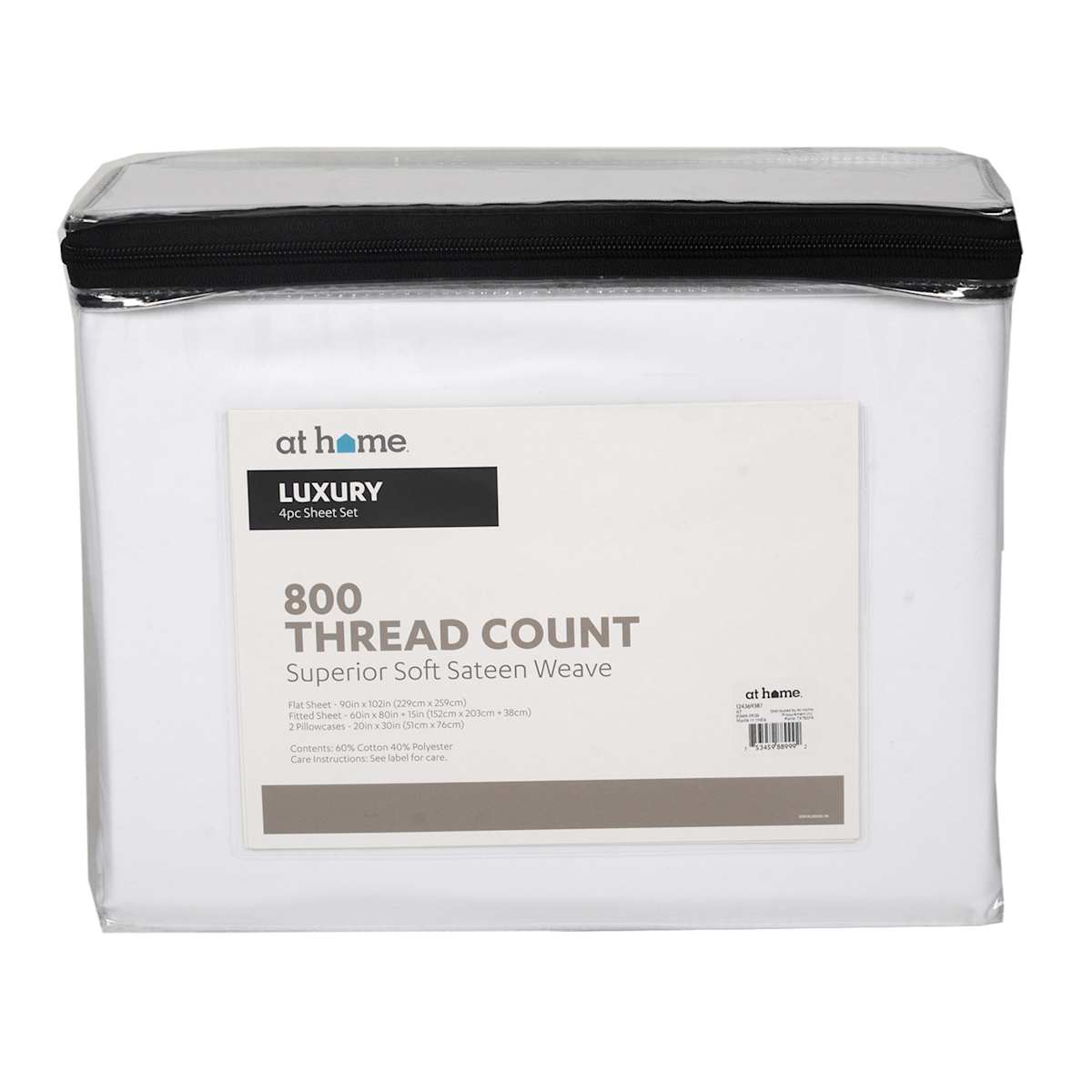 4-Piece White 800 Thread Count Luxury Sheet Set, Queen