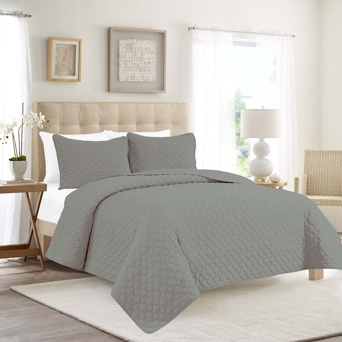 3-Piece Dark Grey Washed Microfiber Quilt Set, King