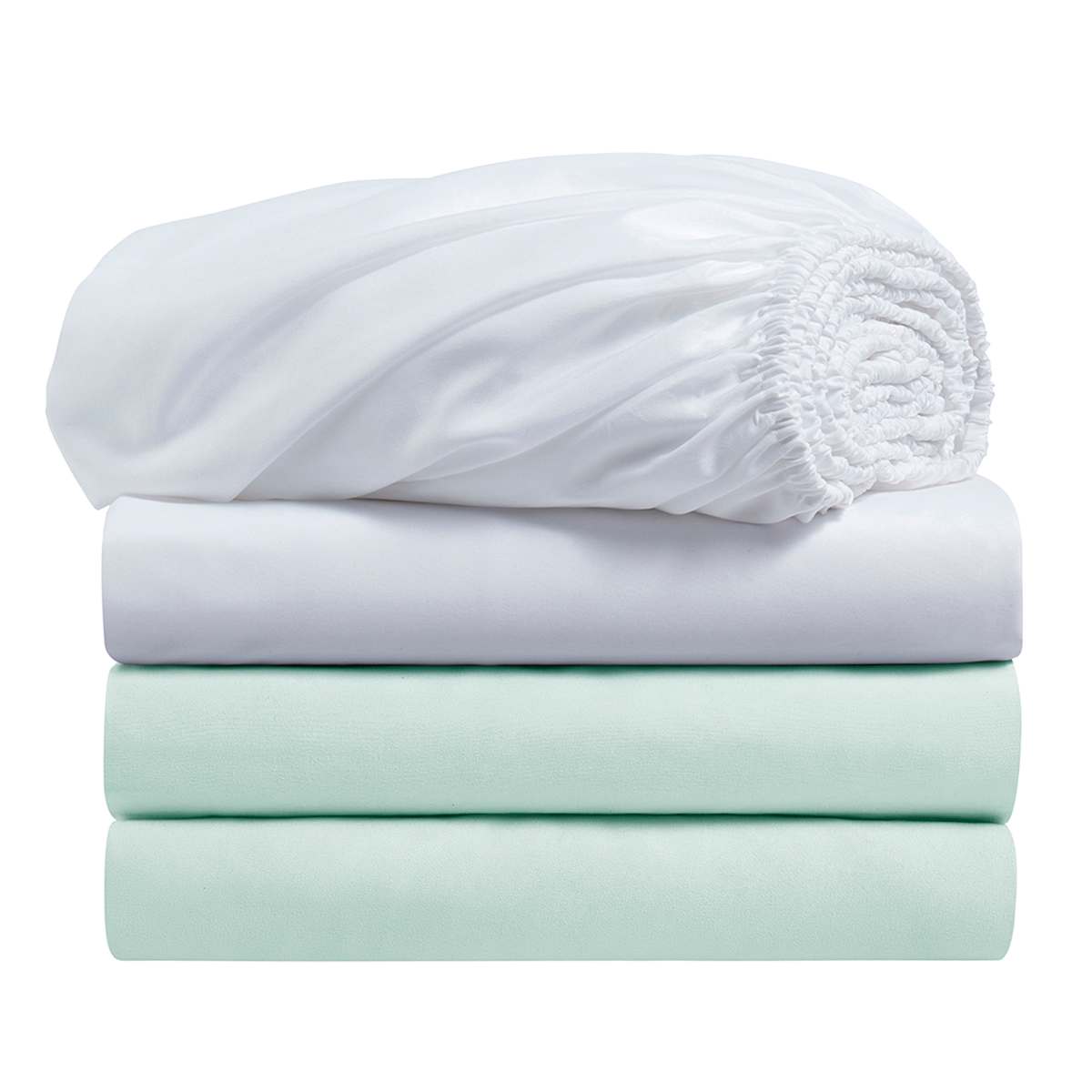 4-Pack Bright White & Aqua Microfiber Fitted Sheet Pack, Twin/Twin XL