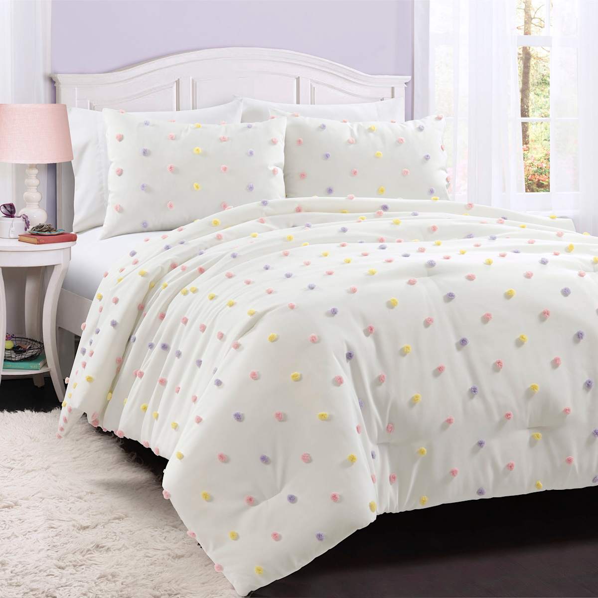 Tiny Dreamers 2-Piece White Tufted Dot Comforter Set, Full