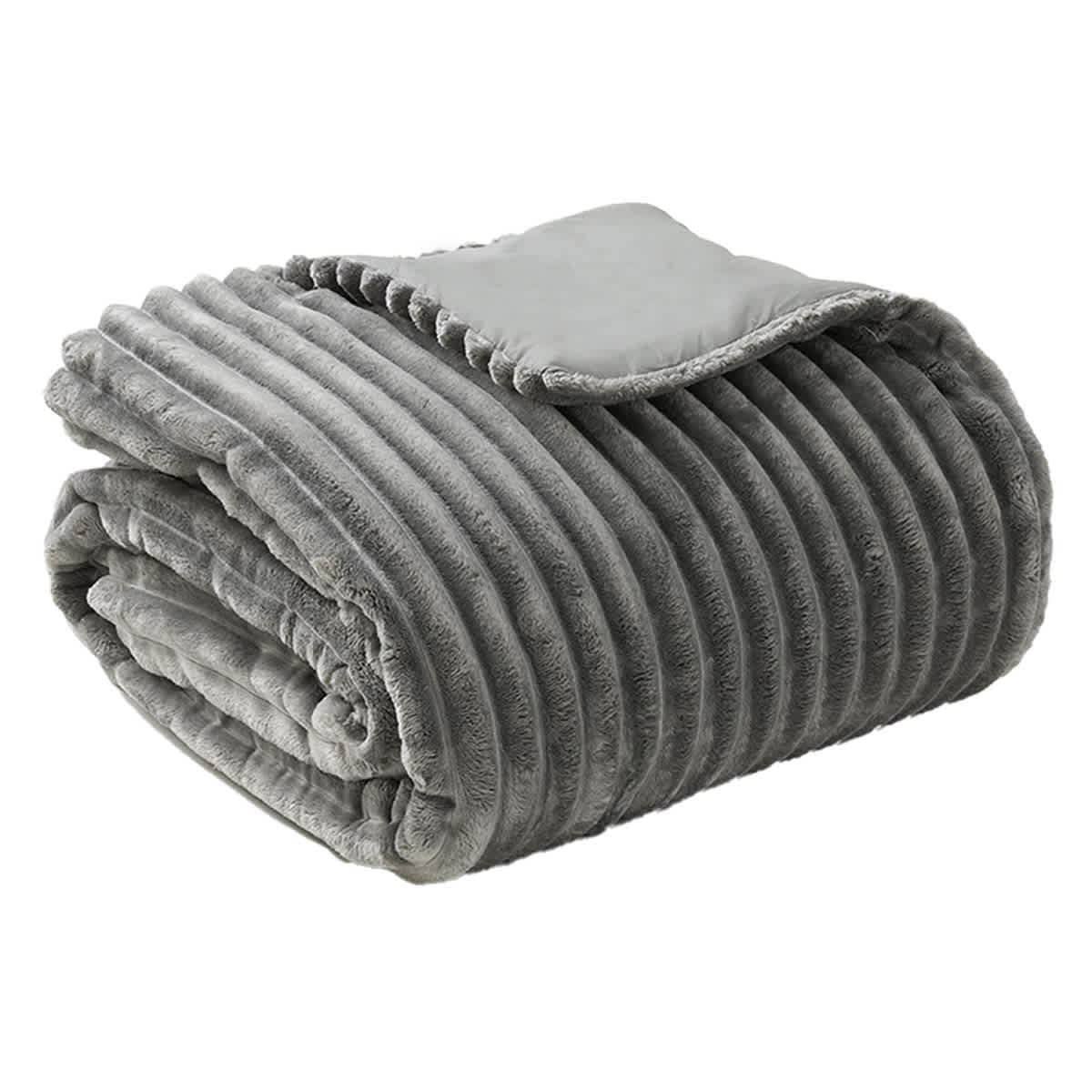 2-Piece Grey Ribbed Plush Comforter Set, Twin/Twin XL