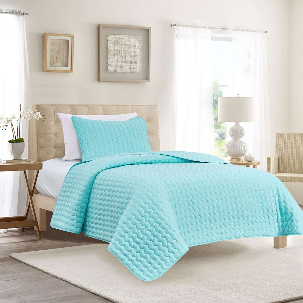 2-Piece Blue Wavy Washed Microfiber Quilt Set, Twin/Twin XL