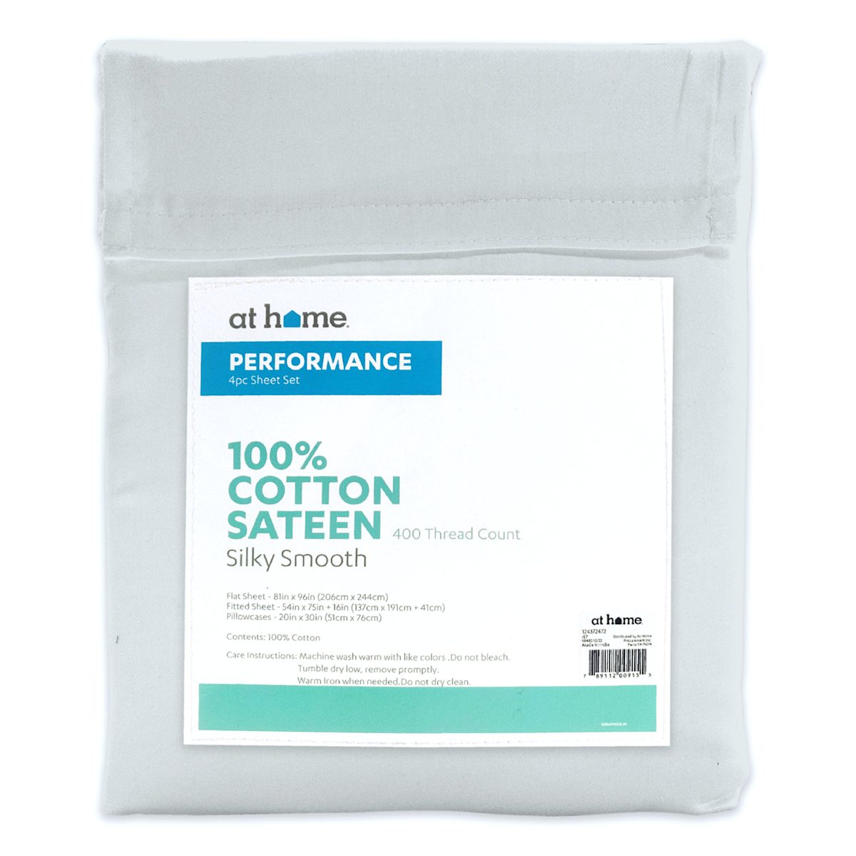 4-Piece Grey 400 Thread Count Performance Cotton Sheet Set, Full
