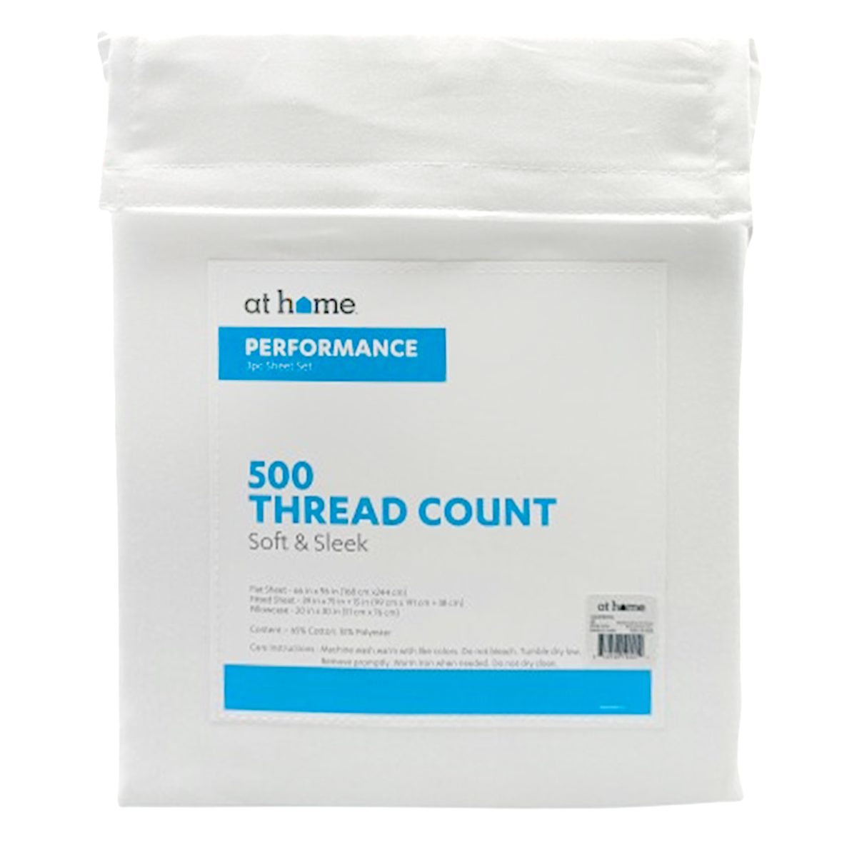 3-Piece White 500 Thread Count Performance Sheet Set, Twin